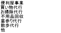 ちょっと買い物を頼みたい、ゴミが重たいので運んでもらいたい、や掃除のお手伝い、電球の取り換え交換作業など少し手が足りないときに!